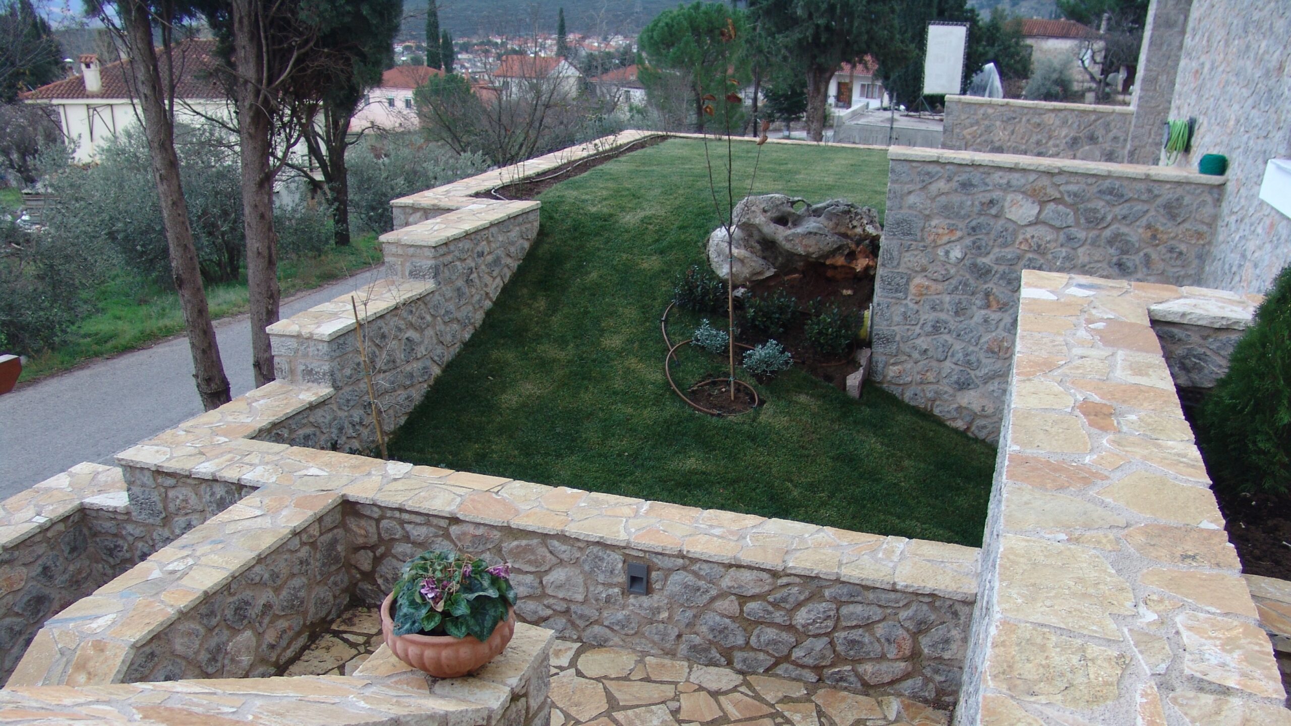 There is a private garden, always taken care of, which can only be accessed by the residents. The 30 m2 terrace is half covered.